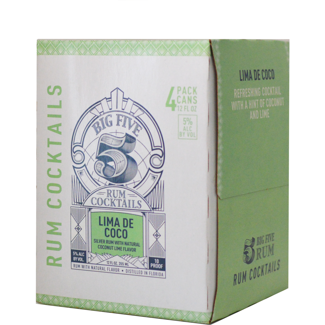 Big Five brings the best of seltzer and canned cocktails together for a full flavored, rum based drink with all natural flavors. Big Five's Lima De Coco is made with Florida rum and all natural coconut and lime flavors. Enjoy at the beach, pool, or just in your backyard for a tropical taste all year long.