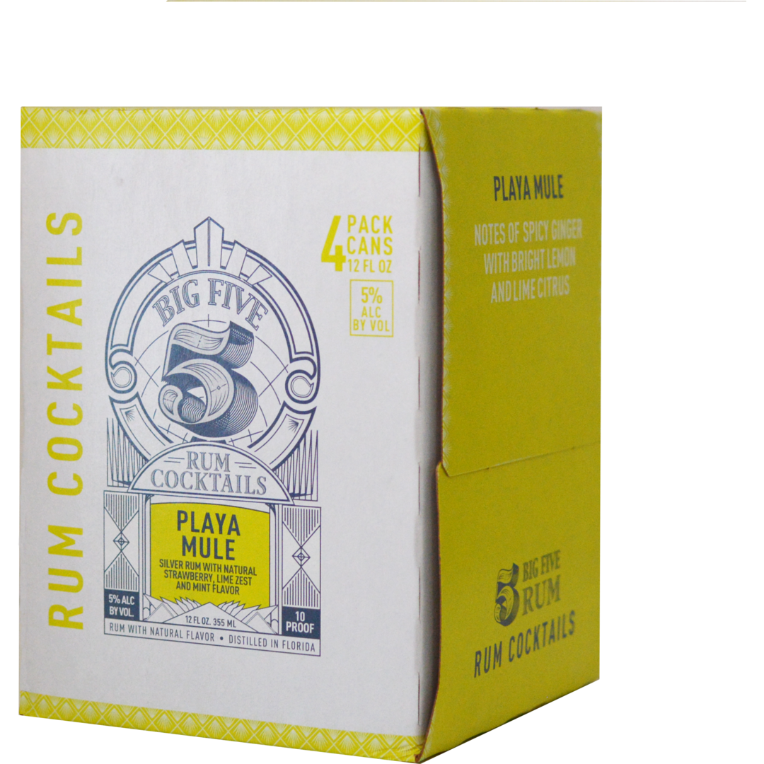 Big Five brings the best of seltzer and canned cocktails together for a full flavored, rum based drink with all natural flavors. Big Five's Playa Mule features silver rum, ginger, mint, and lime for a fun twist on a classic Moscow Mule, and is as delicious as it sounds. Great for the beach, or just hanging out at happy hour!